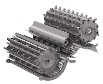 The system subjects the product to a forced separation action and can be retracted completely in the case of delicate products with friable straw. This promotes the formation of abundant and aerated swaths, which is the ideal condition for the efficiency of the successive phases of harvesting and conditioning the straw. The change from a more aggressive to a more delicate threshing system can be done several times a day, electrically.