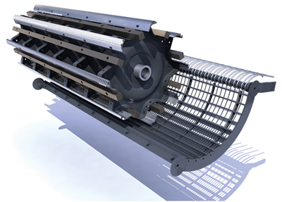 Thanks to the independent electric adjustment system of the front and rear part of the concave, the combine quickly adapts to different types of product in all conditions. The adjustment is simply done from the cab.